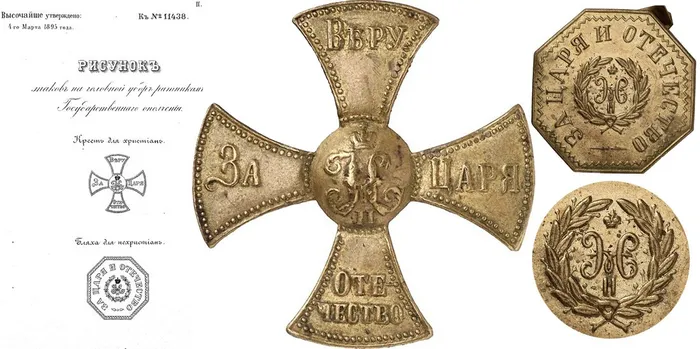 Обмундирование для солдат играет большую роль. Символика своего государства на военной атрибутике в некоторых ситуациях может вызвать прилив патриотичности солдата и поднять боевой дух. Эта идея была реализована еще во времена Николая II. Ратники государственного ополчения носили на тулье своих фуражек крест. Крест исполнен четырехугольным, а материалом, из которого его изготовляли, служила латунь. У него были весьма уширенные концы, а в центре располагался вензель правителя — прямо под императорской короной. [...]