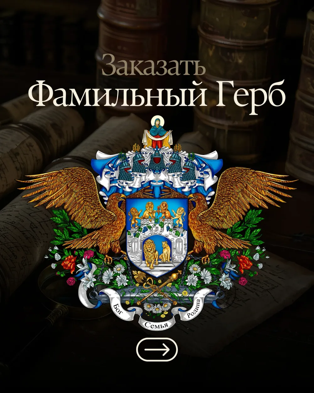 В наследии: герб может стать основой семейной книги, родового архива, или семейным символом, передаваемым через поколения.