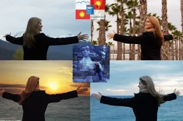 На своем фото девушка обняла элементы, которые находились на гербе города (море, солнце, пальмы и др.), и соединила их определенным образом в коллаж.