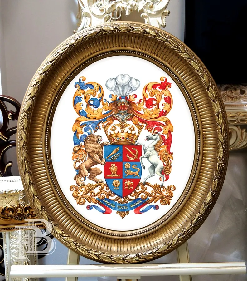 В результате человек получает презент, который вряд ли кто-то дарил ему до этого. Заказчик становится счастливым обладателем фамильного герба элитной категории, который переносят на картину с помощью техники на выбор: