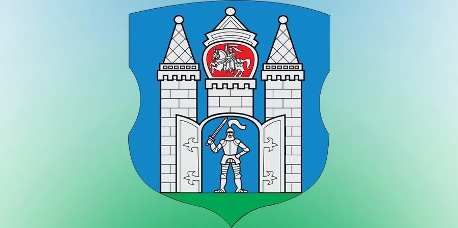 Описание герба Могилева: на фоне голубого геральдического щита стоят серебристые две башни, между которыми расположены ворота. Над воротами размещен щит красного цвета с изображением всадника. А в воротах видна фигура рыцаря в железных доспехах, который триумфально поднимает свой меч над головой.