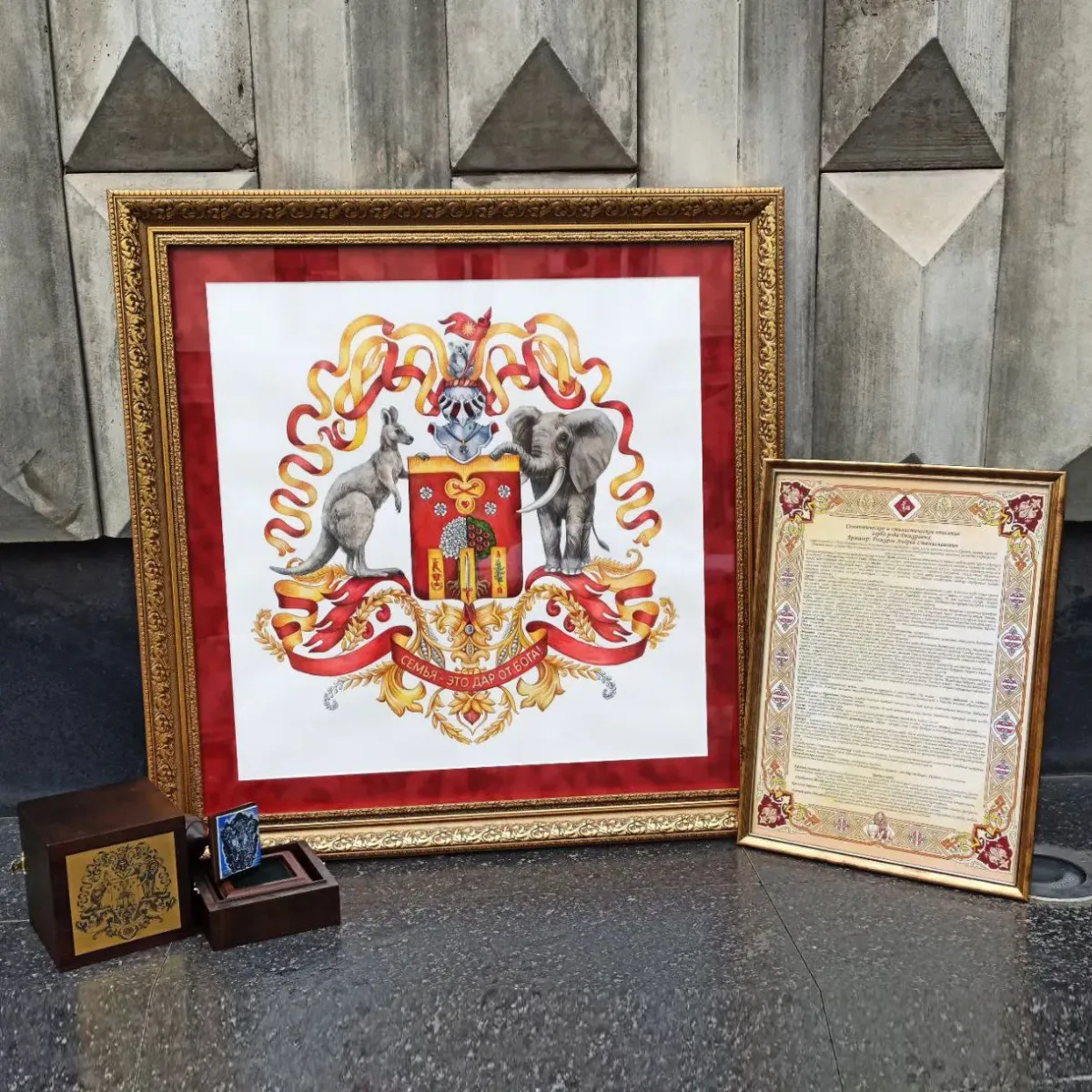 Этот герб — не просто произведение искусства. Это символ любви, веры и наследия, подарок, который способен тронуть сердце и стать семейной реликвией, передаваемой из поколения в поколение.
