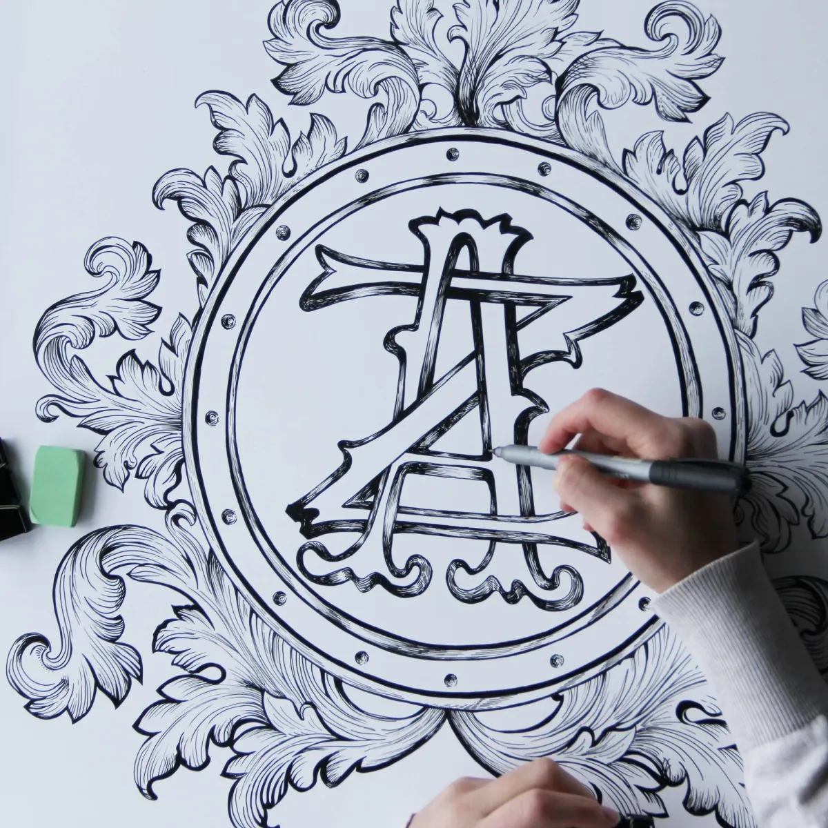 Отрисовка Монограммы в технике- графика (тушь-перо). Подарок супругу на День Рождения.