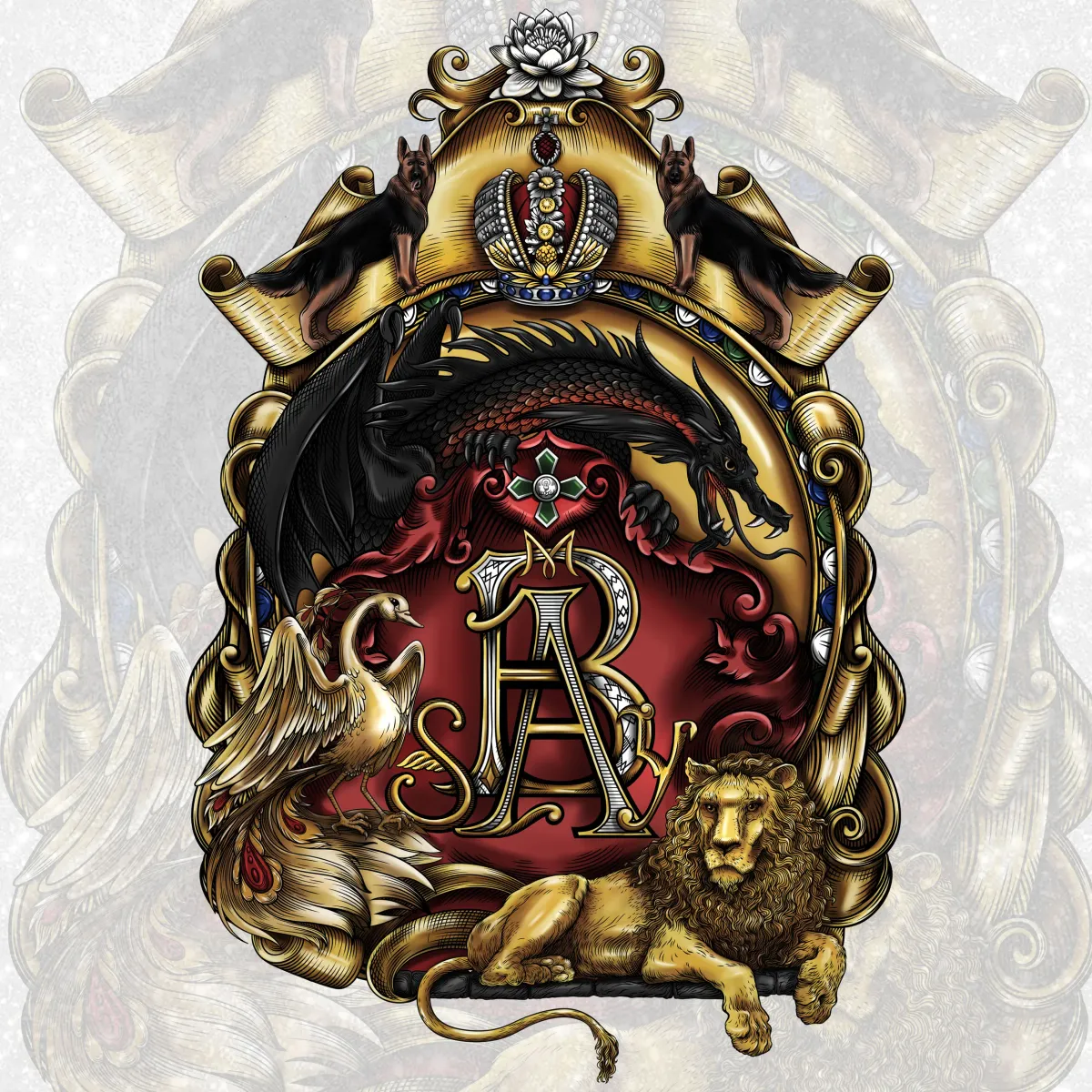 Эта уникальная монограмма создана как драгоценный подарок супругу от любящей жены. В её основе — символы, наполненные глубинным смыслом: мудрый дракон и благородный лев олицетворяют силу, отвагу и защиту семьи, изящная птица хранит гармонию и тепло дома, а корона и лилии подчеркивают честь, достоинство и вечность рода. Каждая линия и деталь переплетены с любовью, чтобы стать не просто художественным произведением, а настоящим оберегом семьи. Эта монограмма — выражение чувств, уважения и признательности, знак, который будет хранить историю любви и единства на многие поколения.